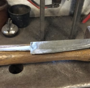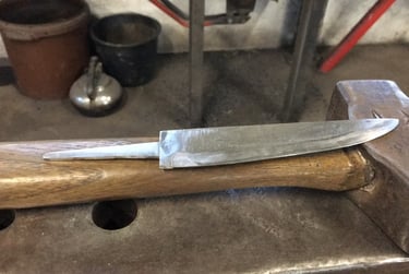 Après une reconversion et une formation spécialisée, je me suis lancé dans la création de couteaux artisanaux, alliant praticité, solidité et esthétisme. Chaque lame que je forge est une pièce unique , pensée pour un usage quotidien tout en reflétant l'authenticité et le caractère de mon atelier .