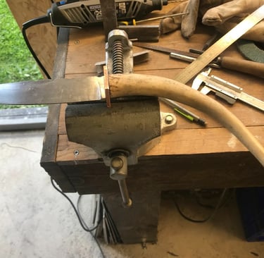 J'ai passé plus de 40 ans à travailler le métal, d'abord dans la métallurgie puis dans la tuyauterie . Ces années m'ont permis d'acquérir un savoir-faire, une précision et une maitrise des matériaux que je met aujourd'hui au service de ma passion : la forge coutelière.